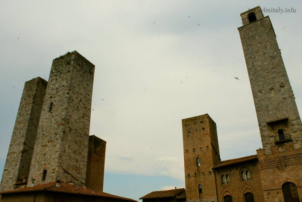 Всеки ще може да се отдаде на съзерцание на високите фамилни кули, символизиращи надпреварата на местните благородници по благосъстояние и престиж. Ще открием прекрасните църкви, дворци, крепостната стена, която ще ни върне назад в друга епоха, ще намираме малките и непознати места на Сан Джиминяно. Бутиците за ръчно рисувана майолика, кожени изделия или шафран, сладкиши и печива, ни „притеглят“ да ги посетим, както и идеята да се изкачим на най-високата от кулите, като на средновековен небостъргач.