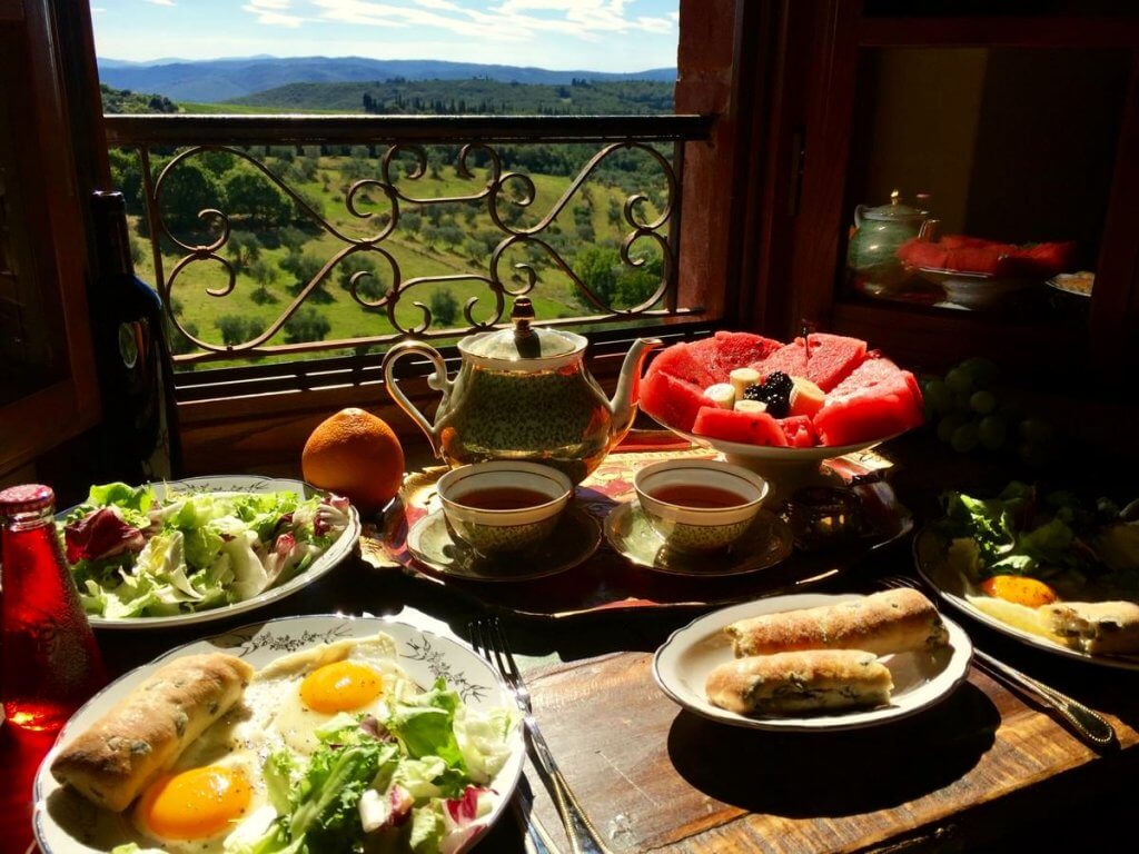 Предлагаме Ви едно угощение за благородници и аристократи. След като разгледаме с нарочен гид на английски език градините и част от замъка, и малкия частен параклис, ще се насладим на специално приготвен от домакините аперитив и вечеря в историческия ресторант на фамилията. Отбрани тоскански ястия, типични блюда за района на Кианти, едно изключително изживяване за гурмани и ценители на добрата храна и вина. Ще се наслаждаваме на няколкостепенно меню от местни деликатеси, традиционна прясна паста със соса на шефа, отлично приготвено основно ястие по тайна рецепта и десерт, който ще ни накара да полетим. Всяко блюдо ще има съответния винен акомпанимент. Ще завършим с едно италианско еспресо….И всичко това на залез слънце……