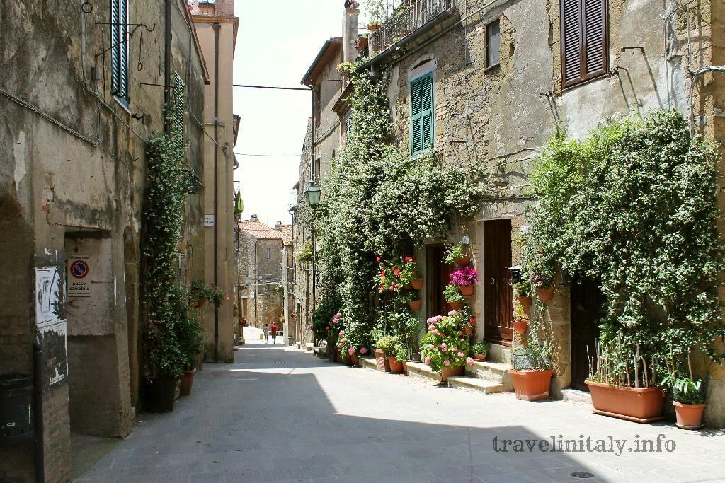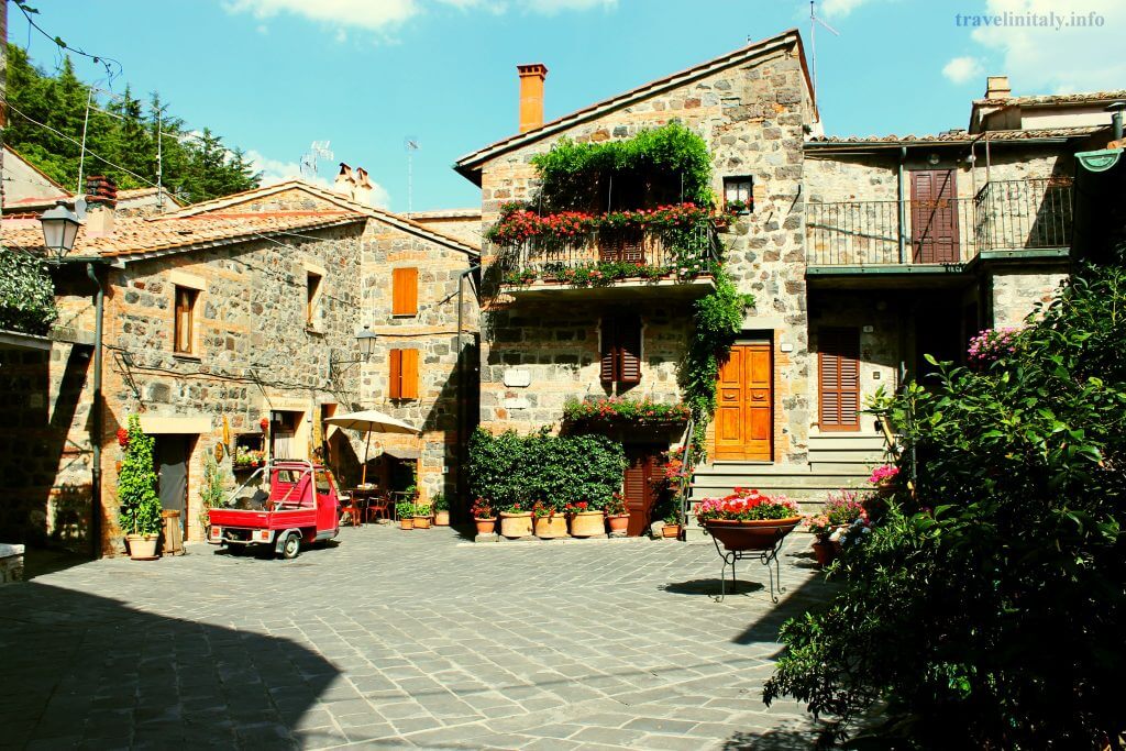 В предиобедните часове ще се настаним на една тераса в стените на средновековно borgo. Съвременния свят е заобиколил това място, оставяйки го непокътнато в отдавна отминал исторически период. Когато се разхождате по тихите улички, може би имате усещането, че сте съвсем сами тук, но знайте, че както твърдят познавачите, почти от всеки прозорец ви дебнат любопитните очи di una donna /на някоя жена/.