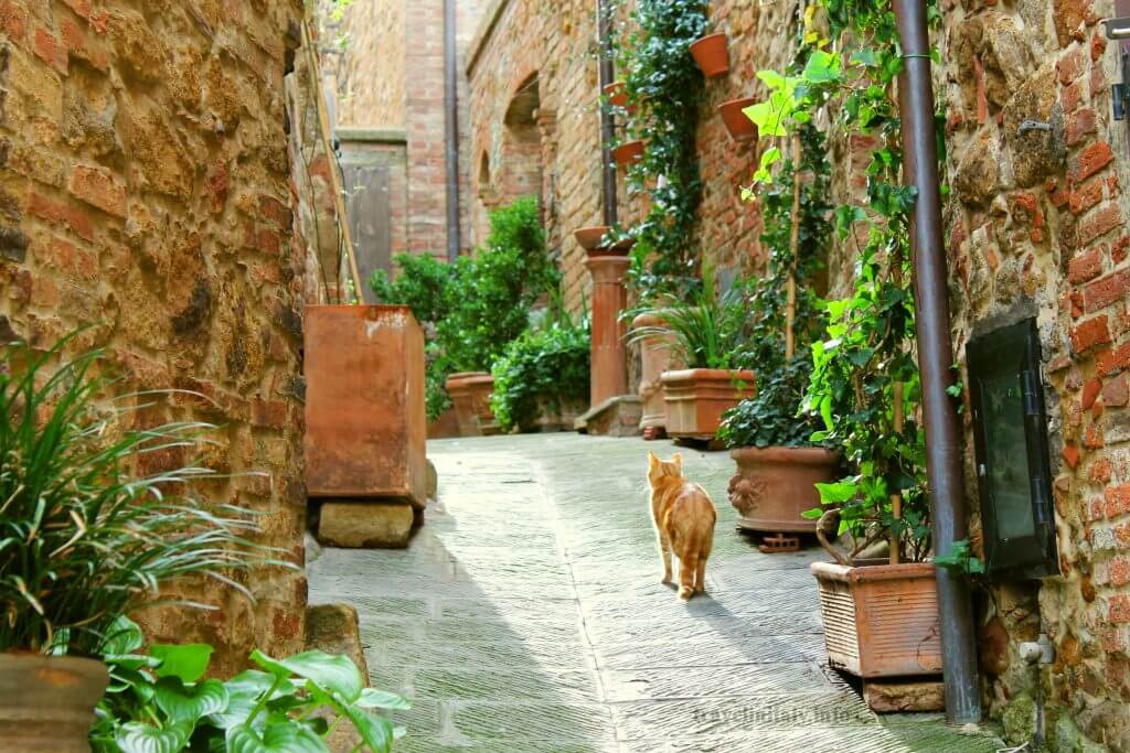Няма да бързаме, но малко по-късно ще се отправим към едно знаменито място. Още непрепълнените с туристи улички на Пиенца през април ще ни разказват истории за любов и тайни срещи. Via dell“Amore или Via del Baccio – разбираме защо носят тези имена и почти си представяме как някой дарява целувка в сянката на каменната стена.