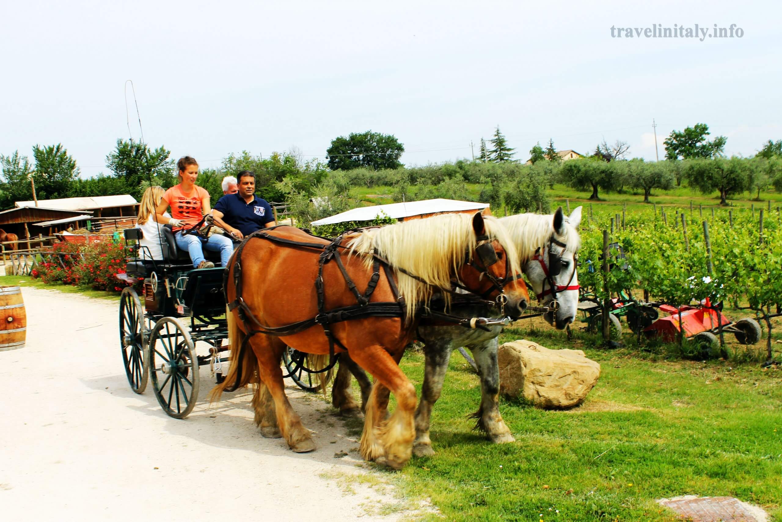 - Разходка с карета из лозовите насаждения на органична ферма за производства на отлично вино в Умбрия, дегустация на биологичните продукти с деноминацията Montefalco и лек обяд с деликатесни сушени меса, традиционни сирена, брускети и разядки;