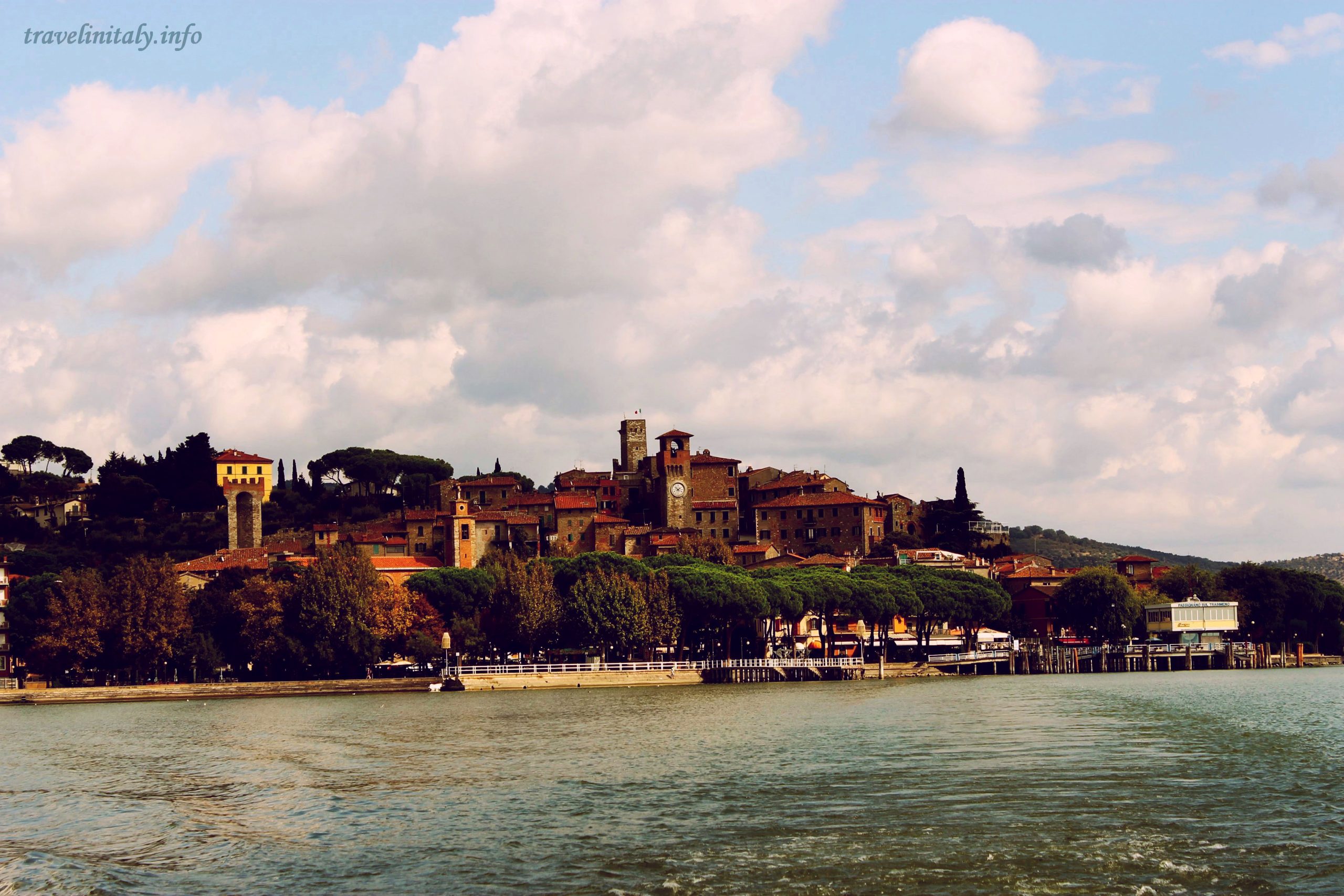Между Тоскана и Умбрия се е разположило езерото Тразимено .. Водната повърхност улавя лъчите на слънцето.. По брега са накацали малки селища, които очакват да ги посетим и да опитаме специалитетите със сладководни риби и една змиорка, дето се лови тук. На един малък нос вдаден в тразименските води се извива укрепителна каменна стена, прекъсвана от високи, кръгли кули ..