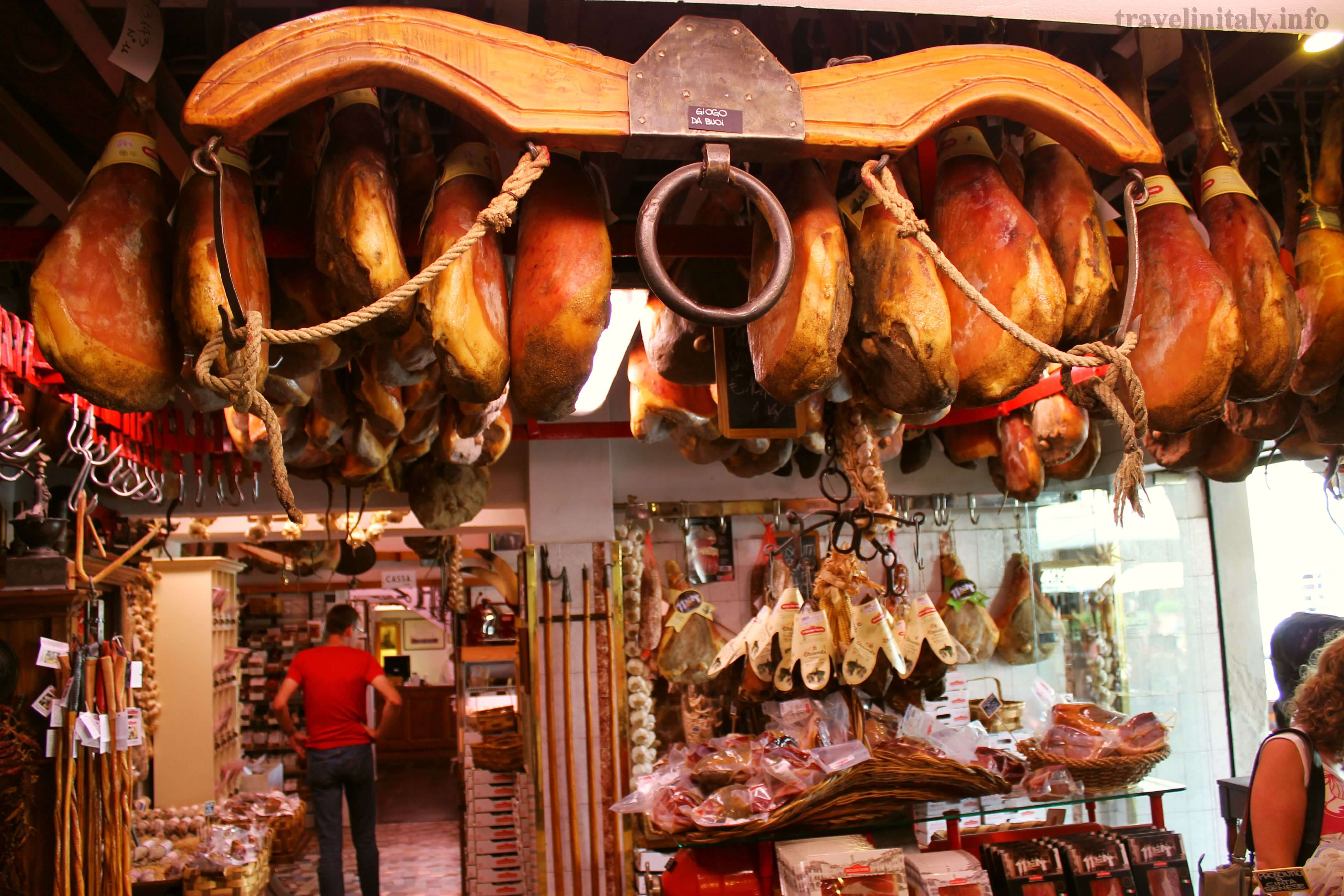 От магазините по главната улица се носи уханието на занаятчийските овчи сирена пекорино /тук можете да прочетете повече за известното сирене/. Отлежавали в орехови листа или в пепел, омесени с черни трюфели, или остарявали благородно в обвивката на джибри от местното вино – сирената са наистина запомнящи се на вкус. В един от тези магазини се предлага пекориното на занаятчийска мандра, продават самите производители и пътят на сиренето от специално отглежданите овце до нас е минимален, това си проличава, когато се опитат.