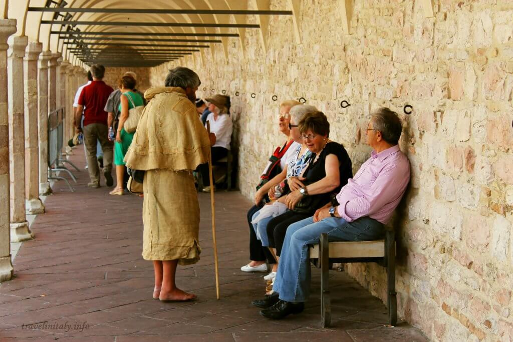 Може би, неслучайно точно тази територия е дала на човечеството Свети Бенедикт – основател на западноевропейското монашество още в далечния пети век, а седем столетия по-късно отново по тези земи се ражда Свети Франциск. Асизи е пристан на природния мистицизъм и въплъщава в себе си поетичния свят на светеца. Премествал червеите от пътя, за да не ги стъпка някой, носел на пчелите мед и вино, за да презимуват по-лесно.