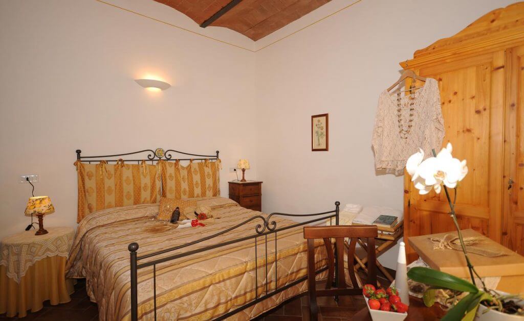 All rooms are on the ground floor and through the living room you access to the garden with swimming pool where there is also a pergola where breakfast is served. The rooms are ideal for couples who want to enjoy the Val d’Orcia.