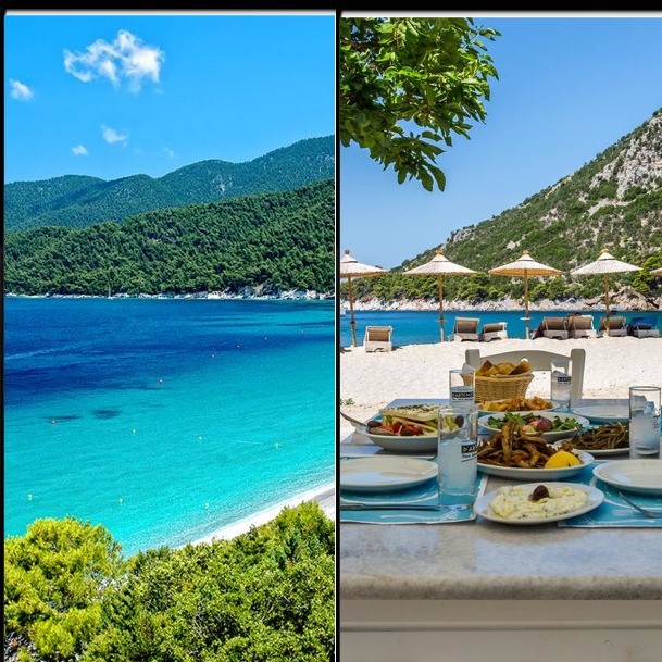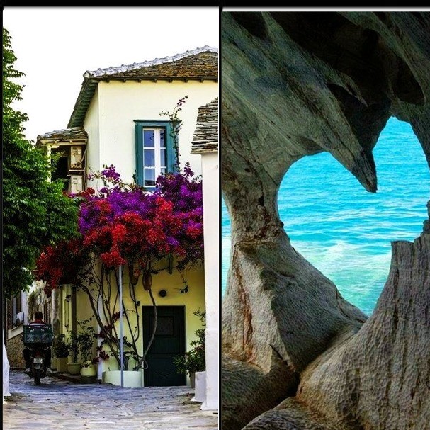 В разговори на фона на приятна музика или пленени от някое четиво ще пристигнем на пристанището във Волос.. След около три часа плаване с ферибот, докато отпиваме от коктейла си или направо от леденото Узо, достигаме до островчето от филма „Mamma mia“ .. помните малкия параклис, кацнал на скалите над морското синьо .. Бугенвилиите ни приветстват в ярки тонове .. чува се музика за веселия .. белите къщи блестят на слънцето, а вратите и прозорците, спазили старите гръцки традиции са боядисани в тюркоаза на малките заливи, красиво прорязани в сушата..